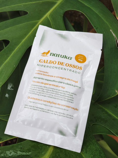 Caldo de Ossos Bovino: O caldo de ossos é uma receita milenar que traz benefícios incontáveis. Tem capacidade de reparar a mucosa gastrointestinal, melhora a absorção de nutrientes, facilita a digestão. Ótima fonte de condroitina e glucosamina, beneficiando a saúde das articulações, pele e pelo. O nosso caldo conta com tecnologia de engenharia de alimentos com uma produção de longas horas de cozimento e desidratação, que preservam ao máximo nutrientes. Um dos seus benefícios mais importantes é justamente o aumento do consumo hídrico.