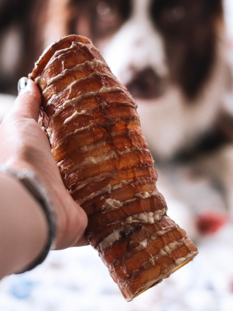 Traqueia Bovina: é um mastigável muito palatável e tem uma crocância que conquista até mesmo os pets mais seletivos. Pode ser recheada para enriquecimento ambiental. Não tem cheiro forte.
